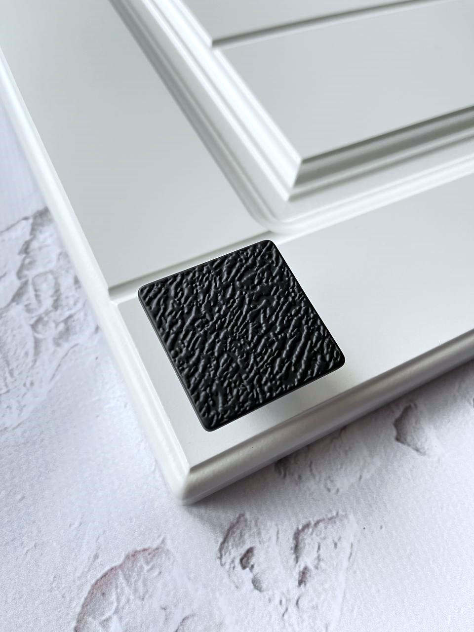 Квадратна ручка з цікавою структурною поверхнею неодмінно стане родзинкою у будь якому інтер'єрі та не залишить байдужим нікого.